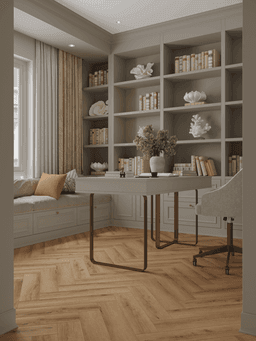 NORLAND PARQUET S 1055-3 Onega исполнена в богатом ореховом цвете, излучающем тепло и элегантность. Ее натуральный рисунок подчеркнут мягким полуматовым покрытием, раскрывающим всю красоту древесной структуры. За счет точного тиснения элементы напольного покрытия складываются в единую композицию, украшая собой любое пространство.