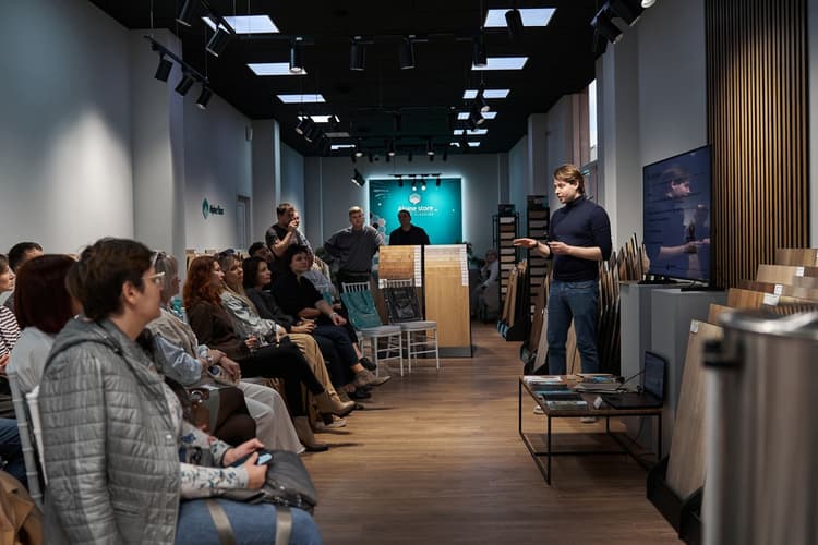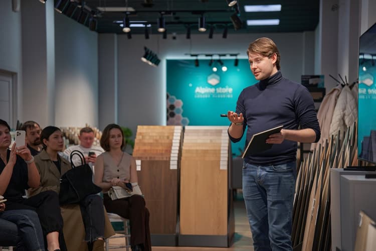 Ведущий тренер по продажам Alpine Floor Николай Архипочкин провел продуктовое обучение по напольным покрытиям бренда, представив топовые коллекции и последние новинки, а также в живом общении ответил на все самые актуальные вопросы.